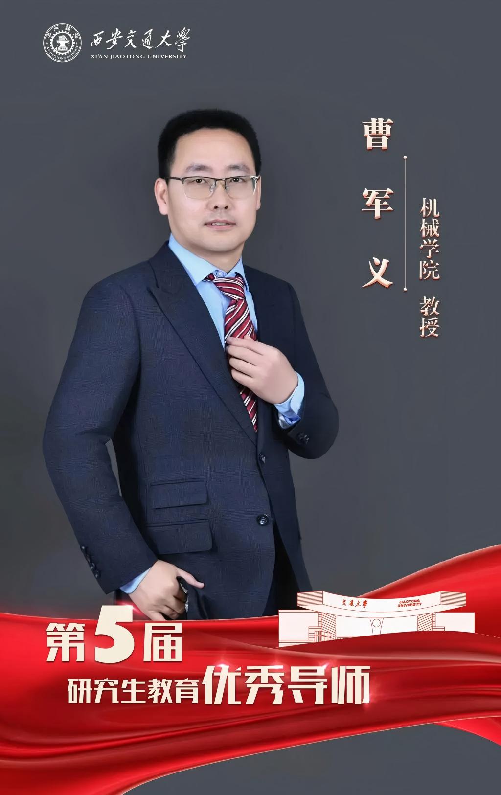 近日,西安交通大学第五届研究生教育优秀导师、优秀导师团队、优秀校外主导师评选结果揭晓,重点实验室曹军义教授荣获2025年西安交通大学“研究生教育优秀导师”(全校10位)。