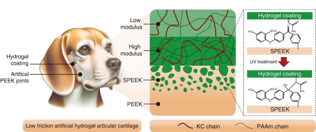 这是水凝胶人工软骨材料首次在大动物关节中实现长周期服役验证,是水凝胶从基础研究迈向临床应用的重要一步。该成果为开发高耐久、低磨损的新一代人工关节提供了全新路径,有望显著延长假体使用寿命,提升患者生活质量。